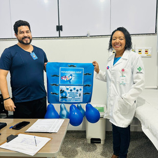 A Psicóloga Dalva Maria de Jesus e a Técnica de Segurança Joanice Mesquita conduziram uma ação dedicada à prevenção do câncer de próstata, em alinhamento com a campanha Novembro Azul.
